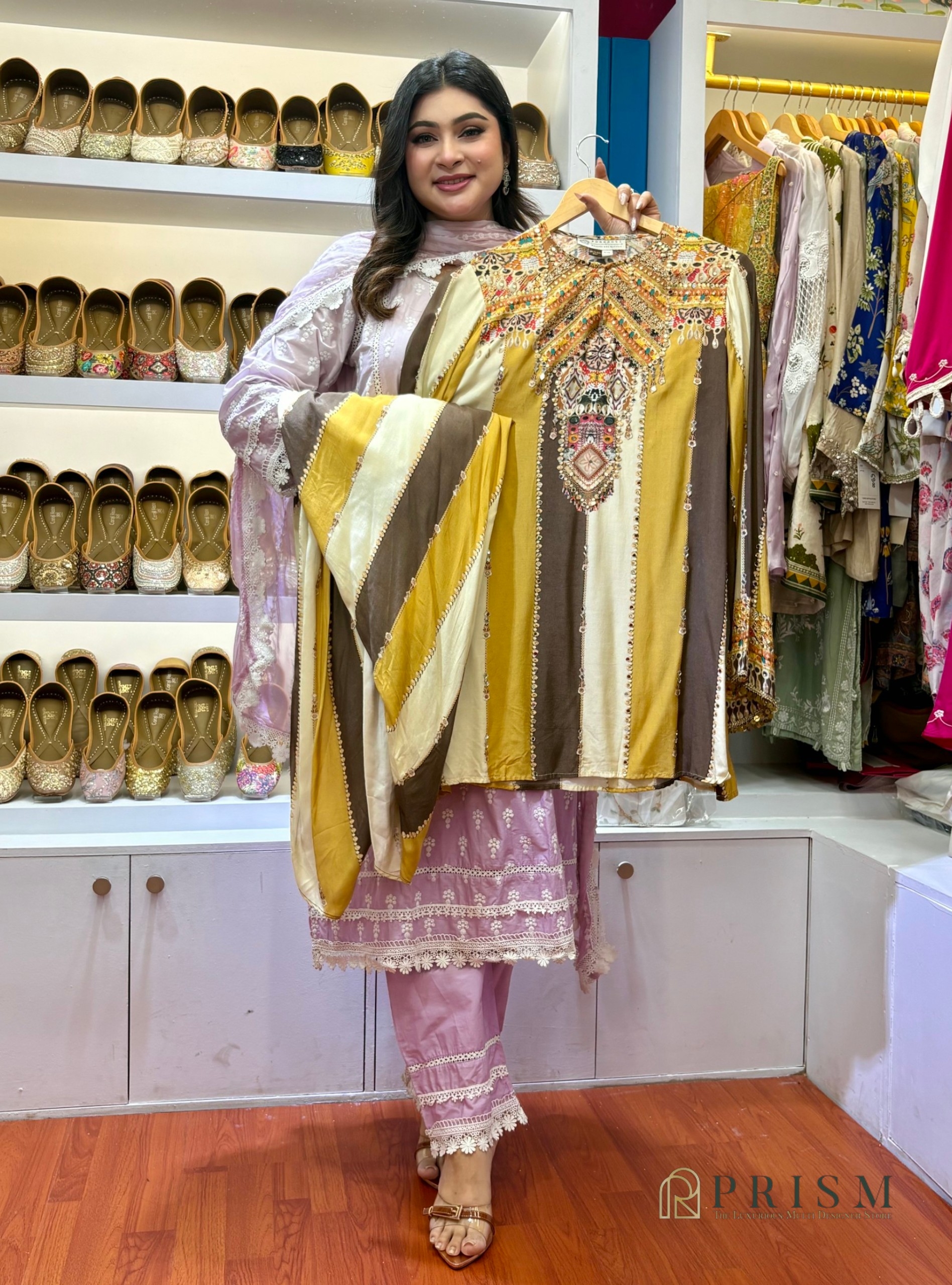 Mulmul Cotton Carrara Pink Kurta With Carrara Pink Pant