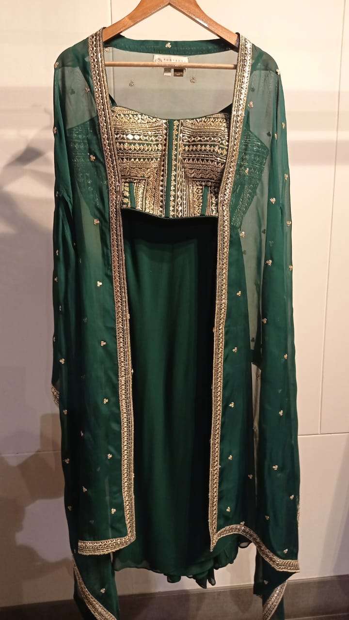/ Green Skirt Set with Cape
