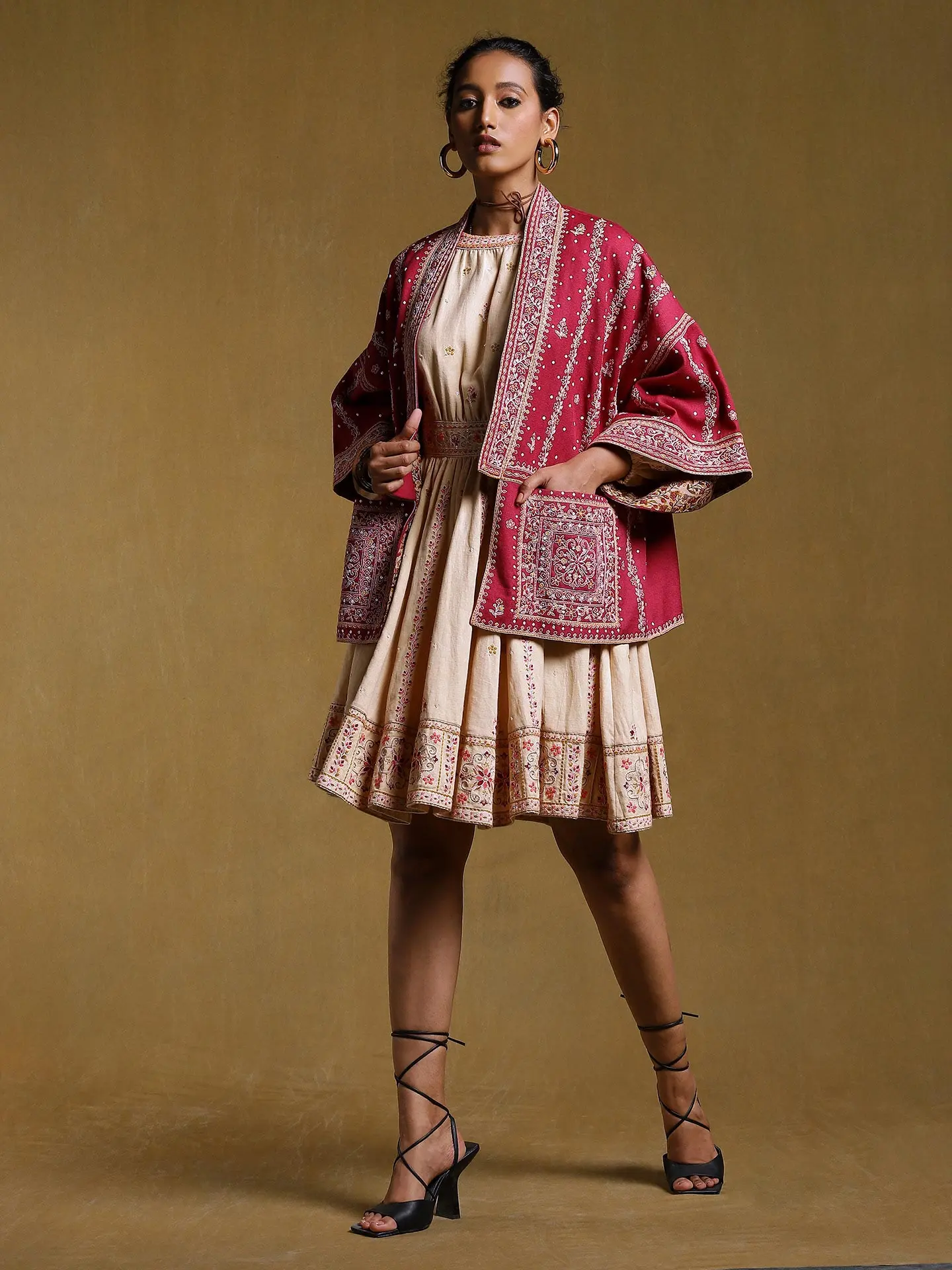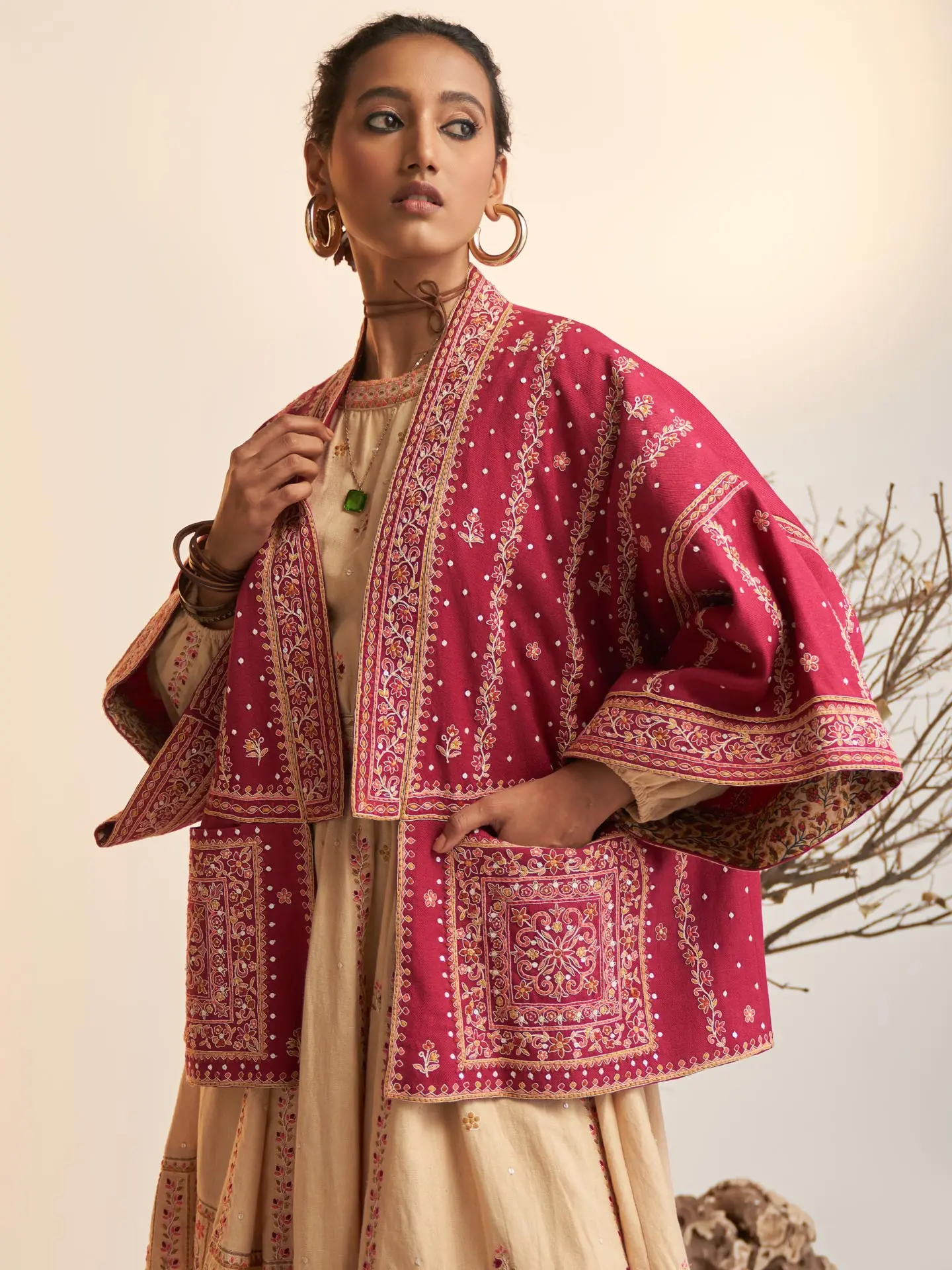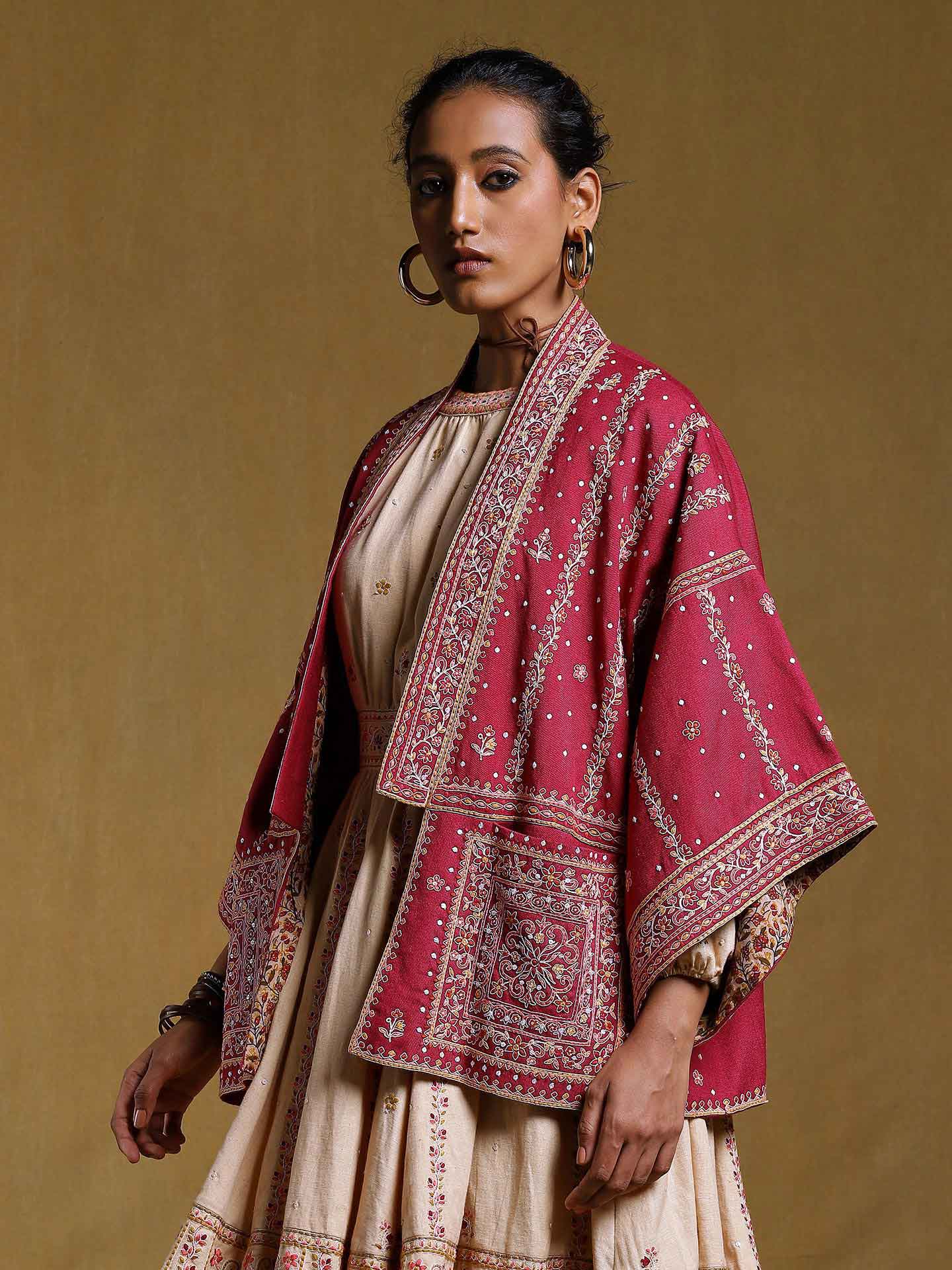 Maroon Embroidered Shrug