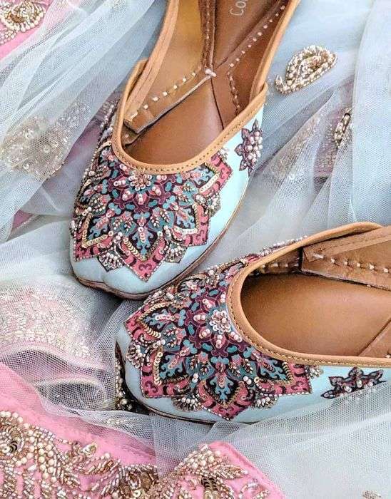 Mandala print Jutti with hand embroidered sequin and bead highlights
