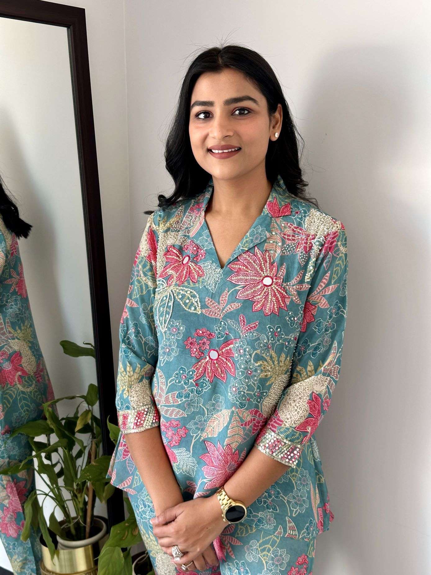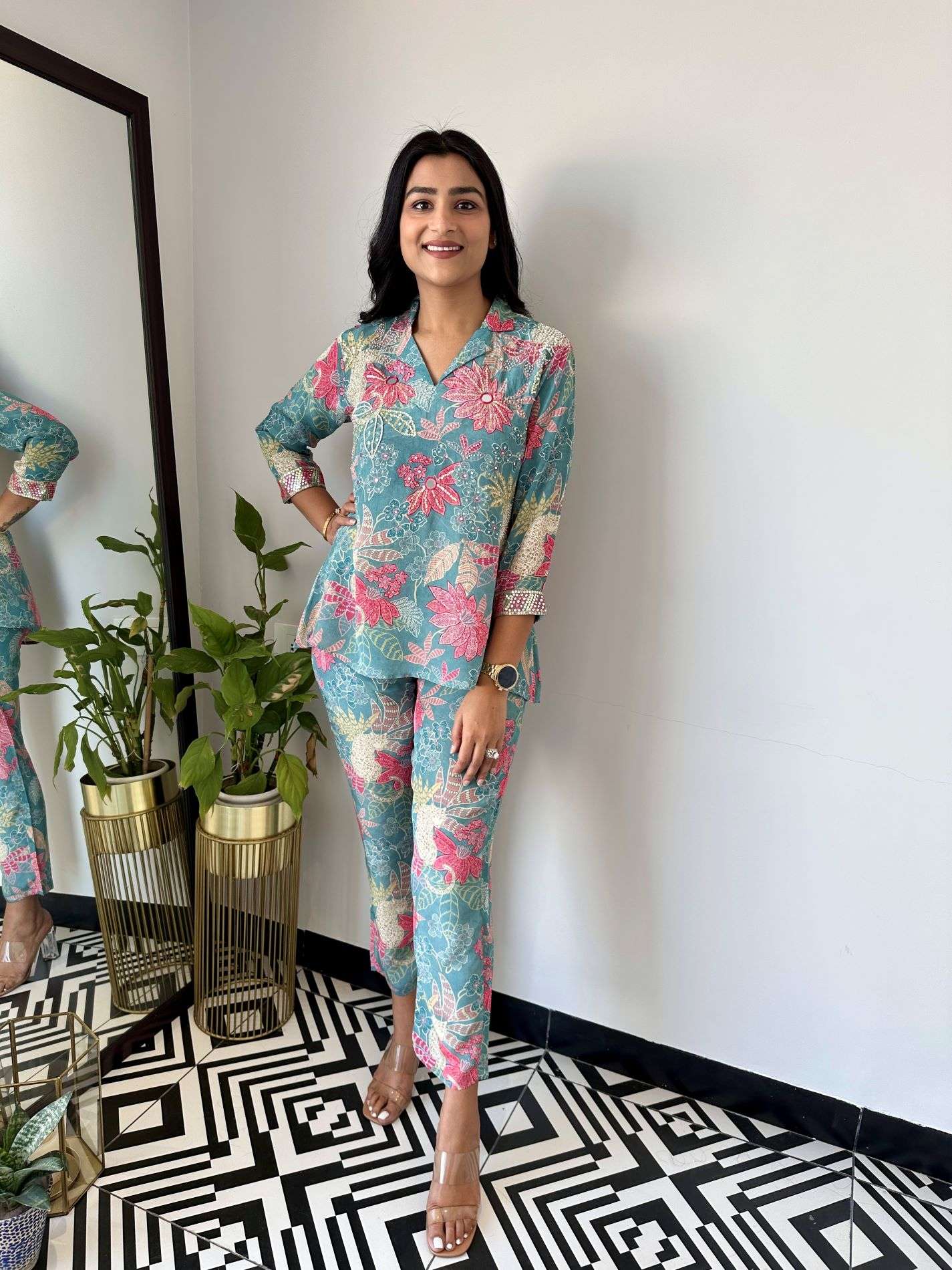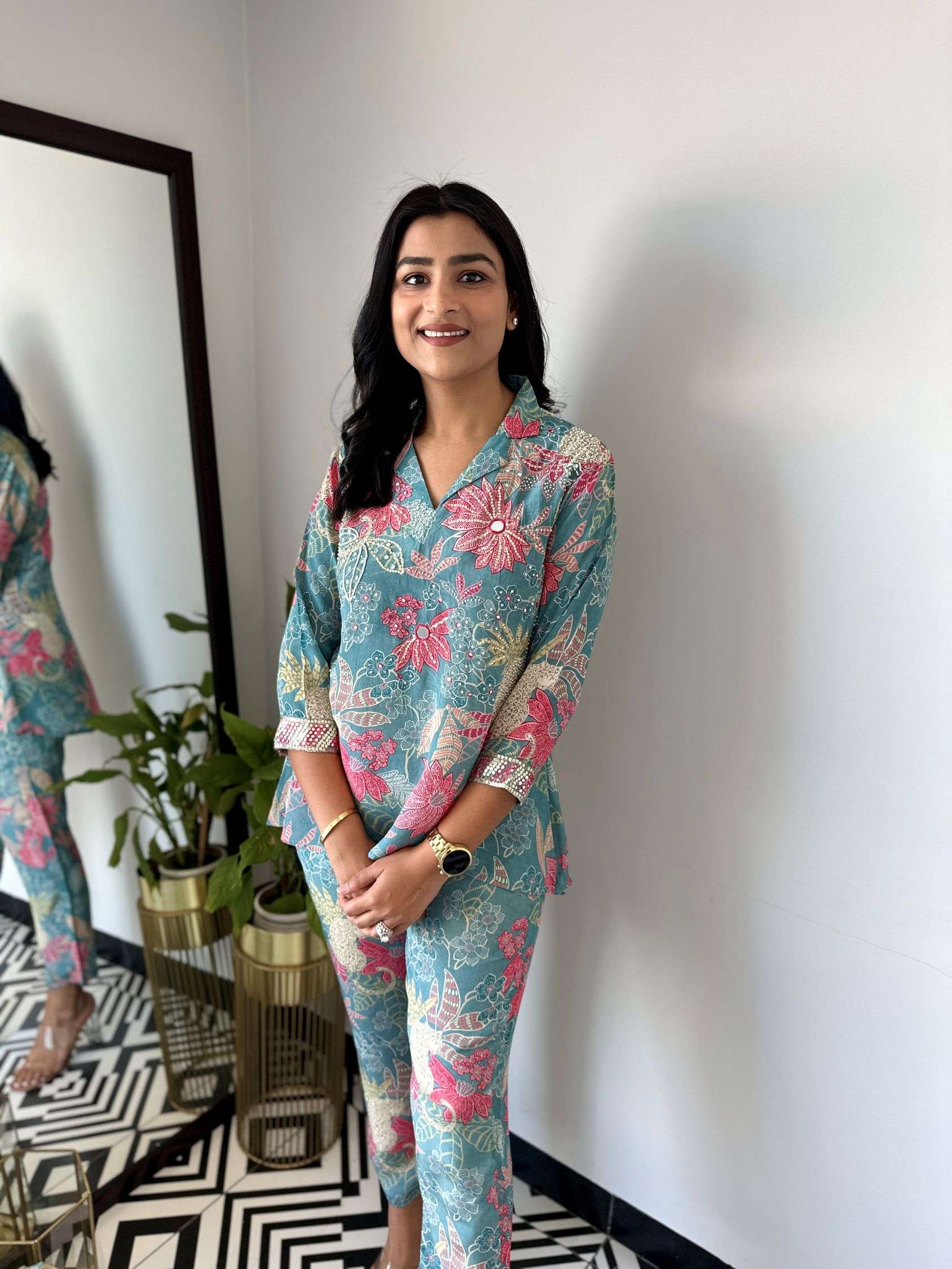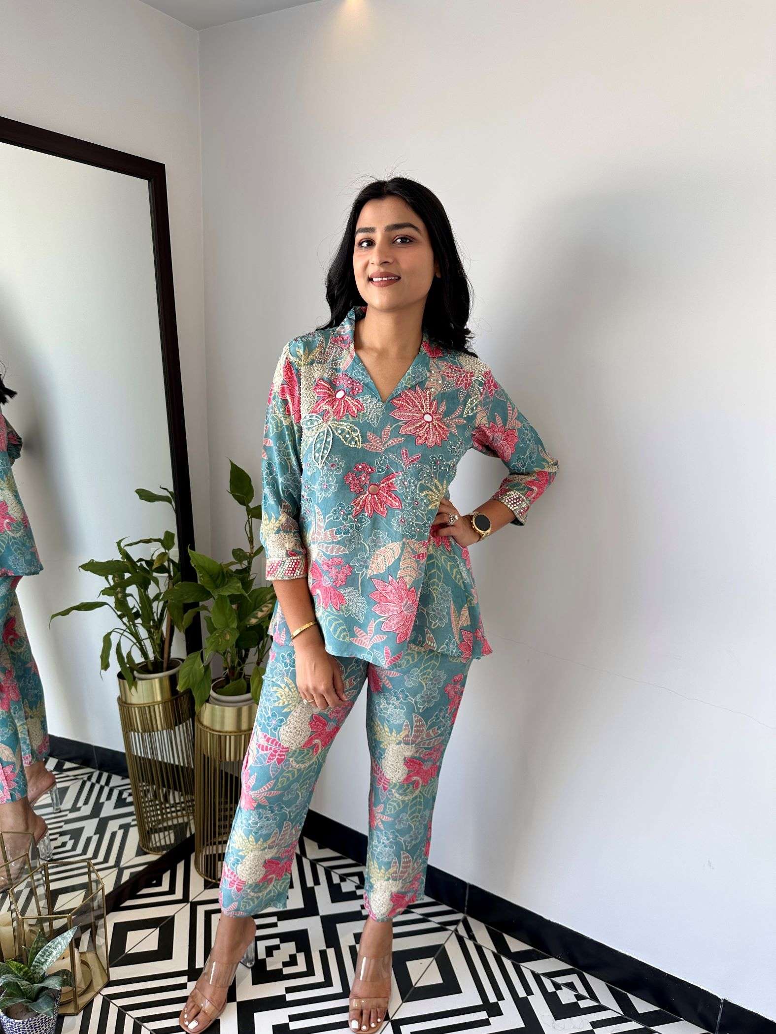 Floral Crepe Cord set with handwork Detailing