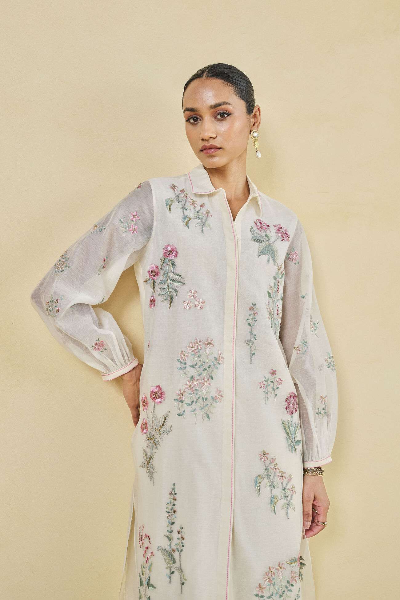 Rhapsody Embroidered Lyocell Coord – Ivory