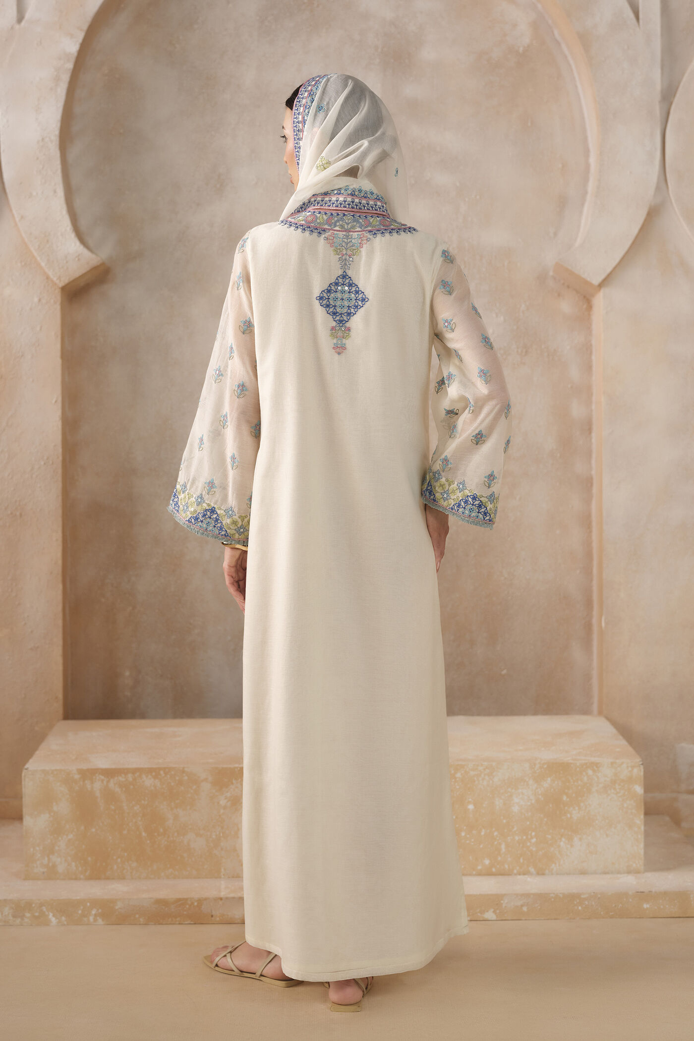 Stellara Embroidered Mul Kaftan - IvoryStellara Embroidered Mul Kaftan – Ivory