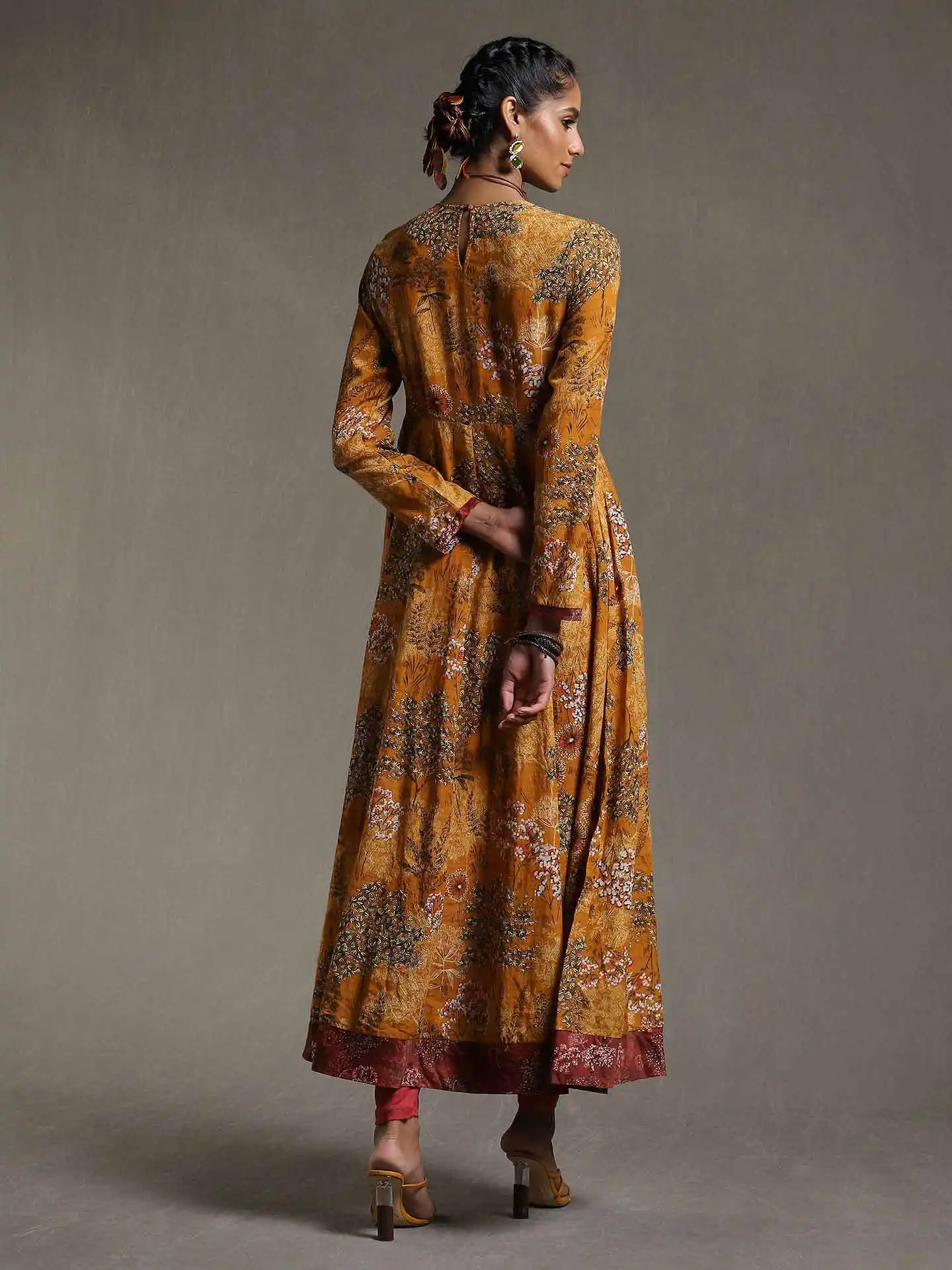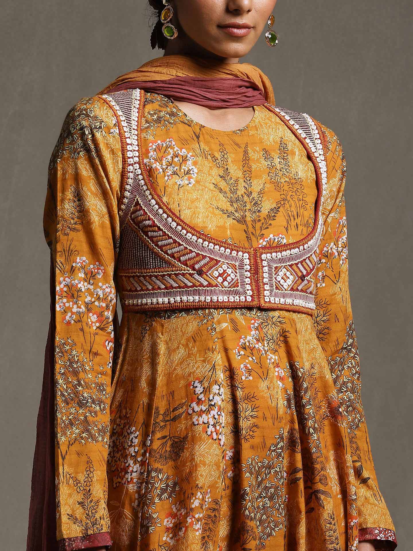 Yellow Printed Anarkali Suit Set 01 prismthestoreYellow Printed Anarkali Suit Set