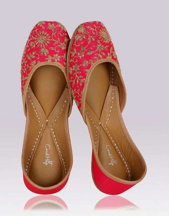 Hotpink juttis with gold dori jaal work